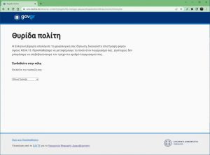 Πατώντας τον σύνδεσμο ΠΡΟΧΩΡΩ που φαίνεται στο ανωτέρω email ανοίγει μια ιστοσελίδα η οποία προσομοιάζει στην Θυρίδα του πολίτη www.gov.gr του Υπουργείου Ψηφιακής Διακυβέρνησης που φαίνεται στην εικόνα 2, όπου ενημερώνεστε ότι έγινε προσπάθεια να μεταφερθούν τα χρήματα στο λογαριασμό σας, αλλά δεν μπόρεσαν να τον επιβεβαιώσουν. Ο κακόβουλος χρήστης σας καλεί να επιλέξτε την τράπεζά σας από το pop up μενού.